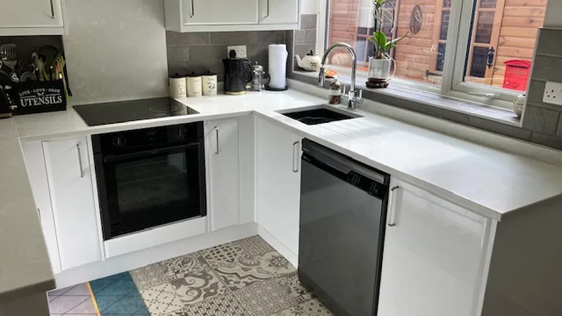 Our skilled team installs cabinets, worktops, handles, and appliances to UK standards.