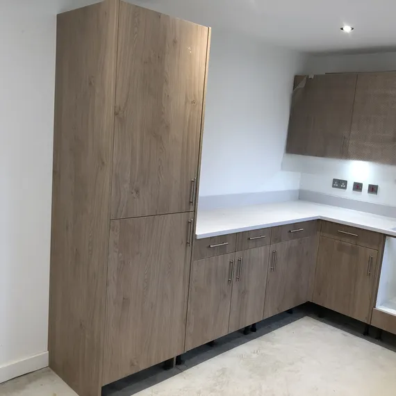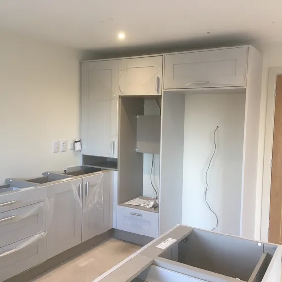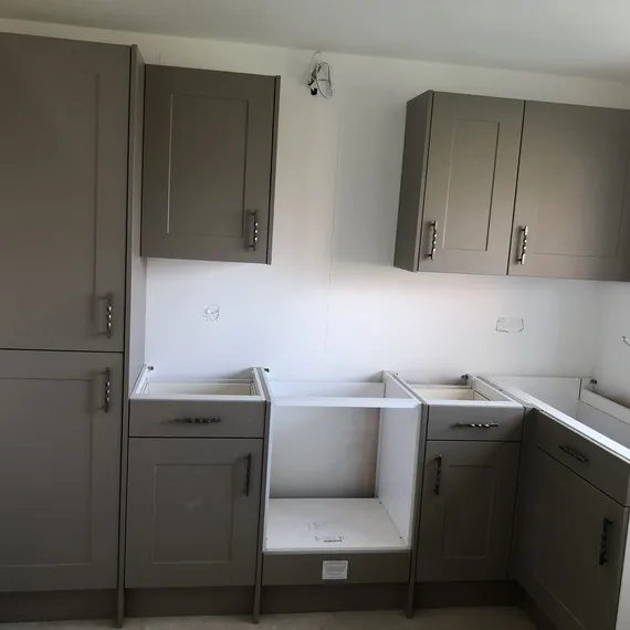 Our skilled team installs cabinets, worktops, handles, and appliances to UK standards.